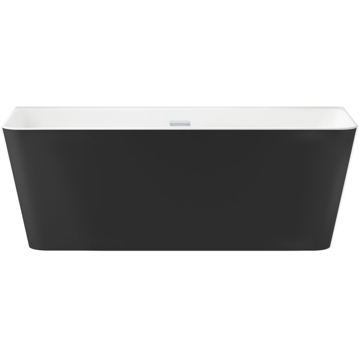Пристенная ванна представлена в размере 170x78 см в сочетании матового черного (на наружных стенках) с глянцевым белым (на внутренних). Выверенная геометрия каждой грани изделия с единым цельным экраном формируют эстетичную композицию без щелей и зазоров, предотвращая попадание под чашу брызг и мелкого мусора. Широкий продольный борт станет идеальным местом для монтажа элегантного смесителя или размещения туалетных принадлежностей. Внешние стенки ванны благодаря их малой толщине деликатно обрамляют чашу, увеличивая тем самым внутренний объем купели без изменения габаритов.