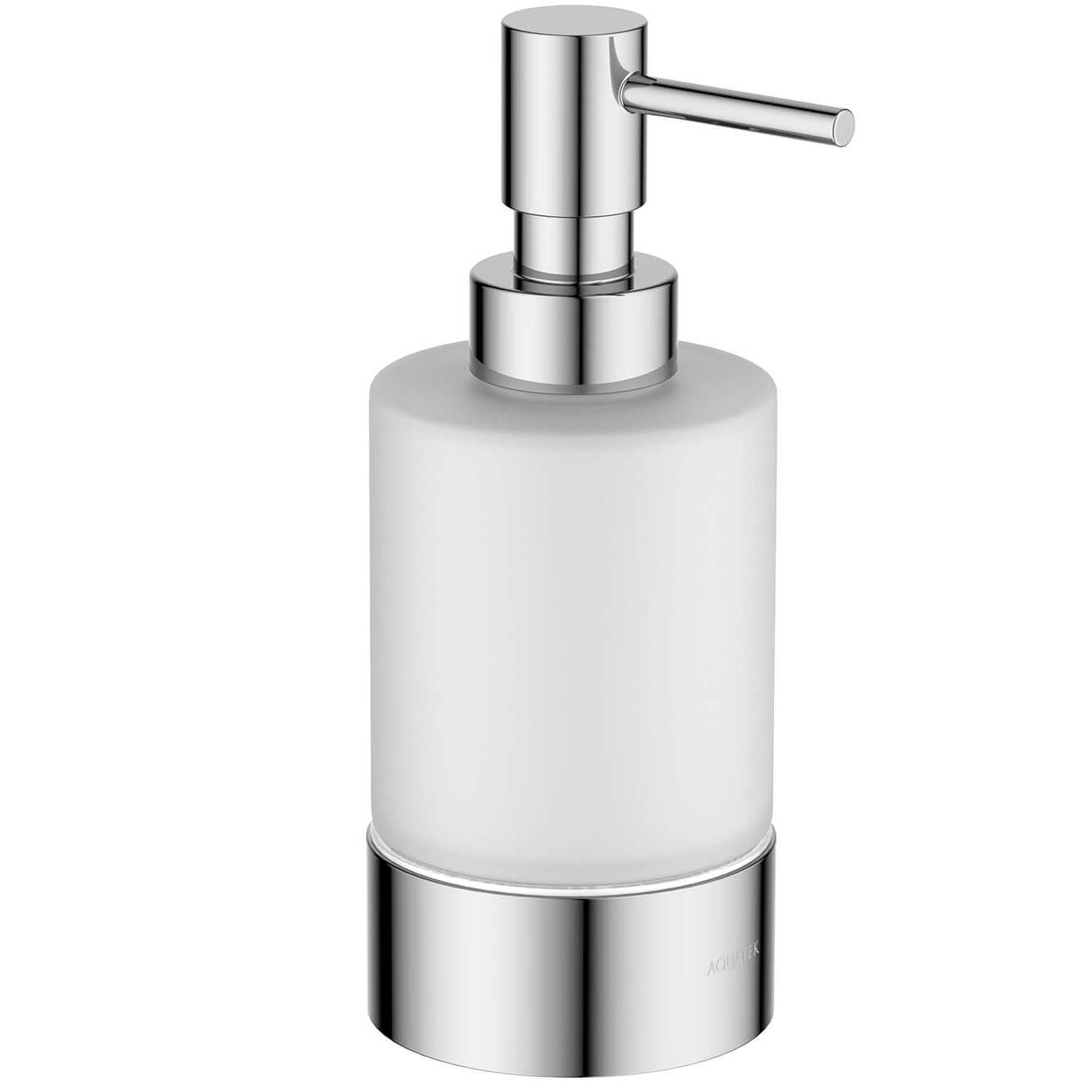 Стакан с дозатором. Основной материал: латунь/стекло белое матовое/цинковый сплав. Монтаж: настольный, свободностоящий. Для жидких моющих средств.