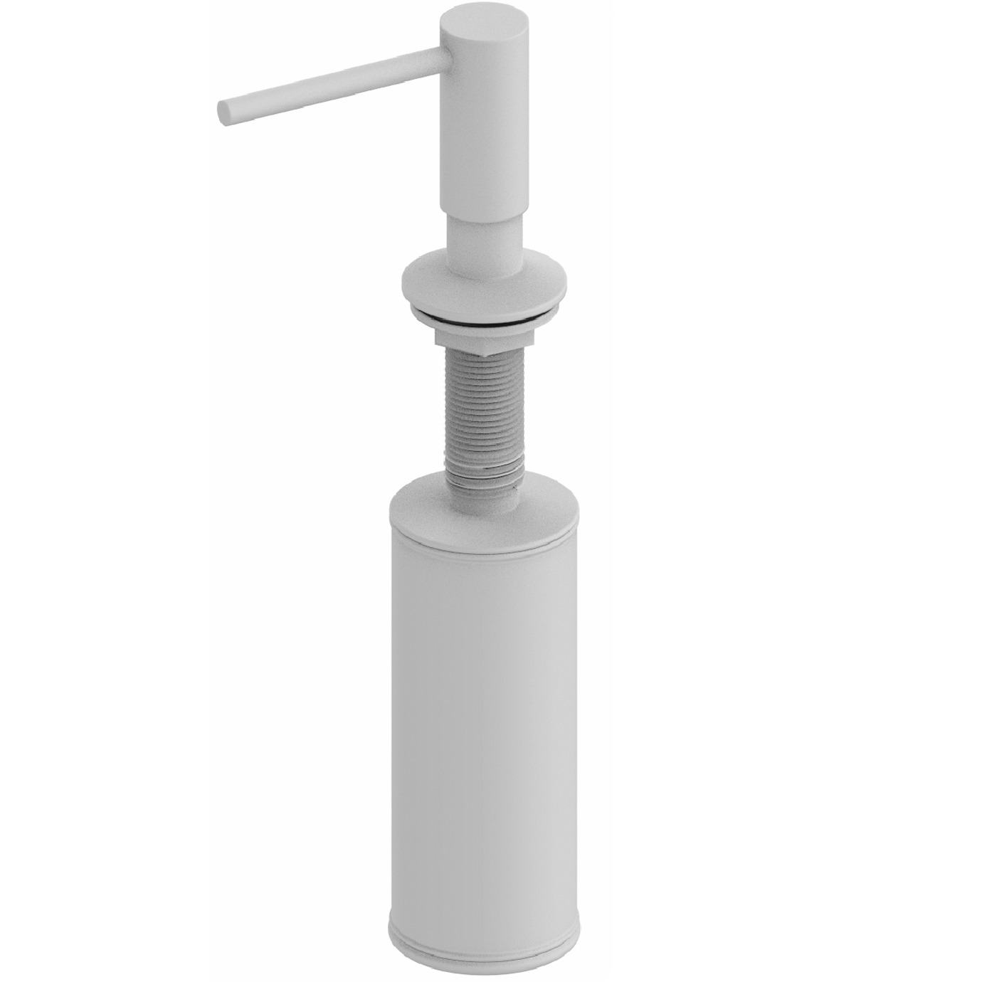 Объем дозатора 320 мл. Материал: латунь, ABS-пластик. Покрытие: PVD-покрытие "белый матовый". Для того, чтобы заправить встраиваемый дозатор, необходимо простым движение снять носик и долить жидкого мыла. Демонтировать дозатор не нужно. Максимальная толщина столешницы 52 мм.