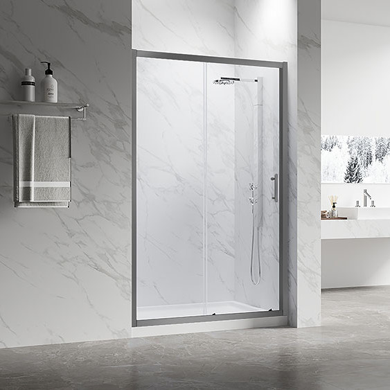 Душевая дверь раздвижная. Раздвижная дверь и одно неподвижное стекло. Стекло закаленное безопасное 6 мм. Магнитные уплотнители. Профиль анодированный алюминий. Регулируемые двойные ролики. Ручка из нержавеющей стали. Универсальная установка открывания двери. Поддон приобретается отдельно. Комплектуется с боковой панелью KP-14GM, образуя П и Г-образный угол RV-055GM.