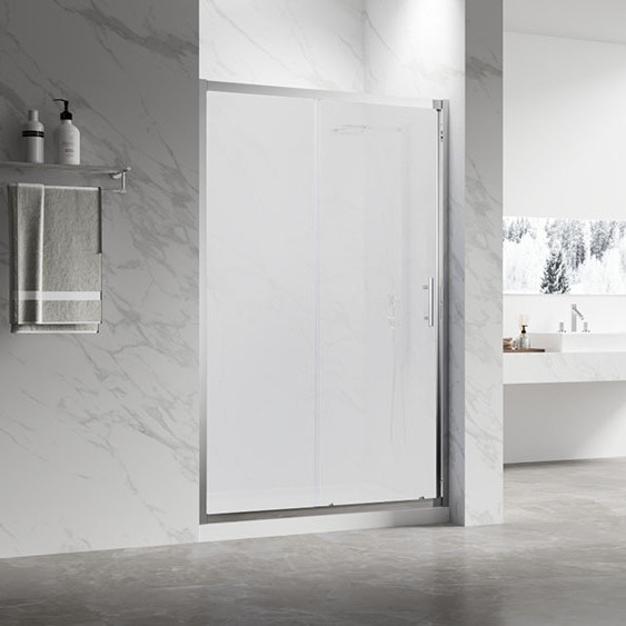 Душевая дверь раздвижная. Раздвижная дверь и одно неподвижное стекло. Стекло закаленное безопасное 6 мм. Магнитные уплотнители. Профиль анодированный алюминий. Регулируемые двойные ролики. Ручка из нержавеющей стали. Универсальная установка открывания двери. Поддон приобретается отдельно. Комплектуется с боковой панелью KP-14M, образуя П и Г-образный угол RV-055M.