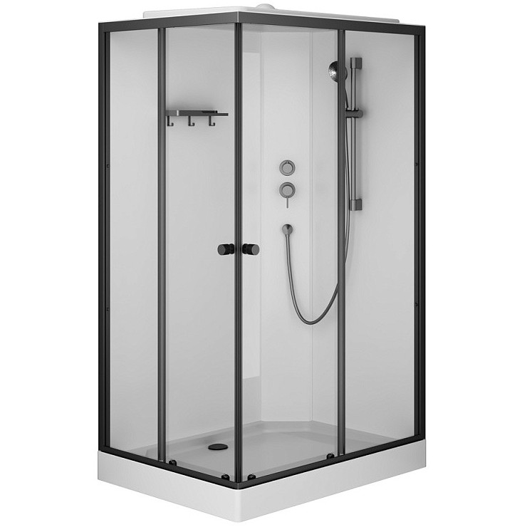 Душевая кабина Am.Pm X-Joy W94C-403-12080BT, 120x80 см, с крышей, стекло прозрачное, профиль черный матовый. Душевая кабина X-Joy - это ультрасовременное решение для вашей ванной комнаты. Она сочетает в себе функциональность, стильный дизайн и надежные материалы. Алюминиевый профиль устойчив к коррозии. Цвет профилей – чёрный матовый.Одинарные ролики обеспечивают легкое и бесшумное открывание. Кабина оснащена 5-режимным ручным душем, стильным смесителем и компактной полкой, на которой разместится все необходимое. Герметичная конструкция защищает помещение от брызг воды. Кабина X-Joy обеспечит вам незабываемые ощущения и станет настоящим украшением вашей ванной комнаты.