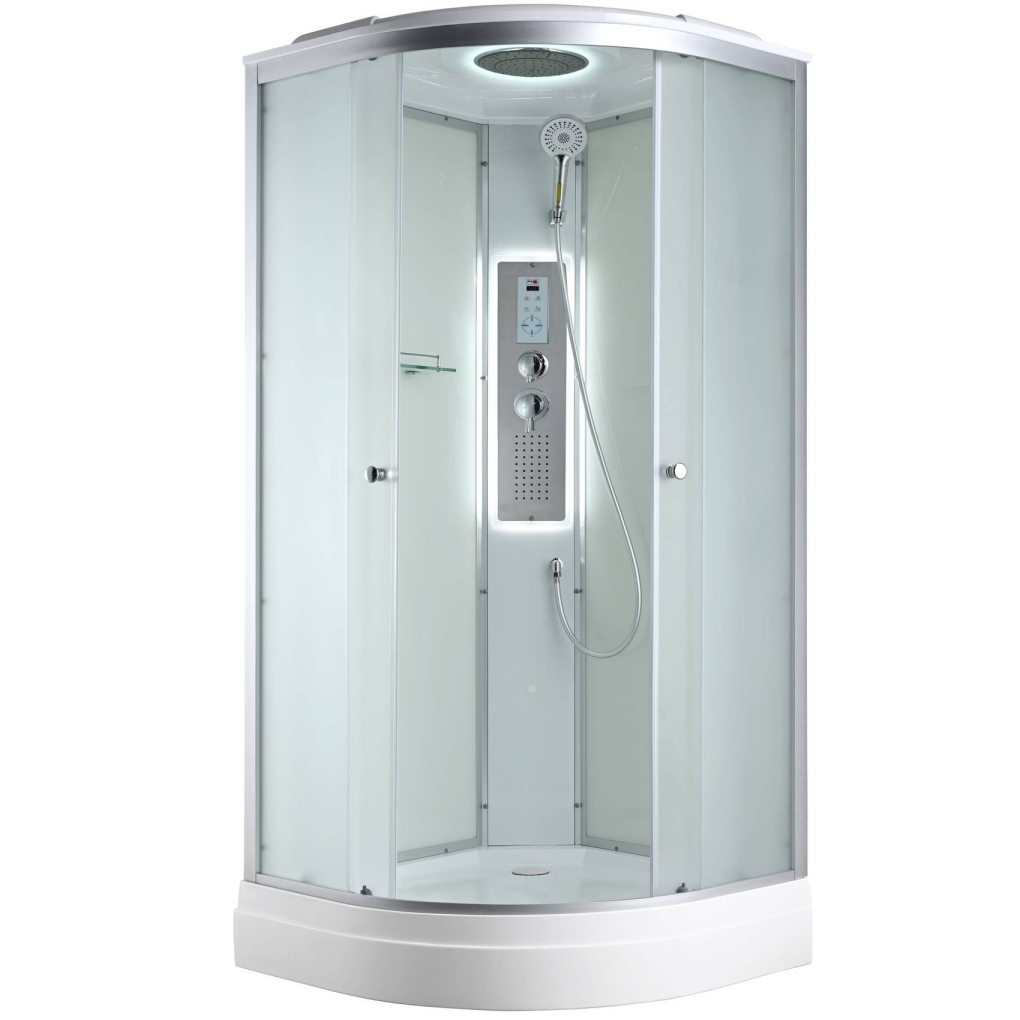 Стильная душевая кабина сочетает в себе высокую функциональность, практичность и надежность. При изготовлении применяется безопасное закаленное стекло толщиной 4 мм (матовое), надежно фиксируемое алюминиевым профилем. Сборка без силикона (увеличивает срок службы), внутренняя сборка(облегчает установку и ревизию; позволяет установить в ограниченном пространстве), смеситель резьбовой (без хомутов). Съемный экран поддона (позволяет осуществлять ревизию сифона). Цвет профиля матовый хром. Двойные металлические ролики дверей (увеличивают срок службы).В комплекте : полочка, тропический (верхний) душ, арома-лейка с витамином С (картридж съемный), сенсорный пульт (блютуз, радио, LED подсветка в крыше и в центральной панели, вентилятор).