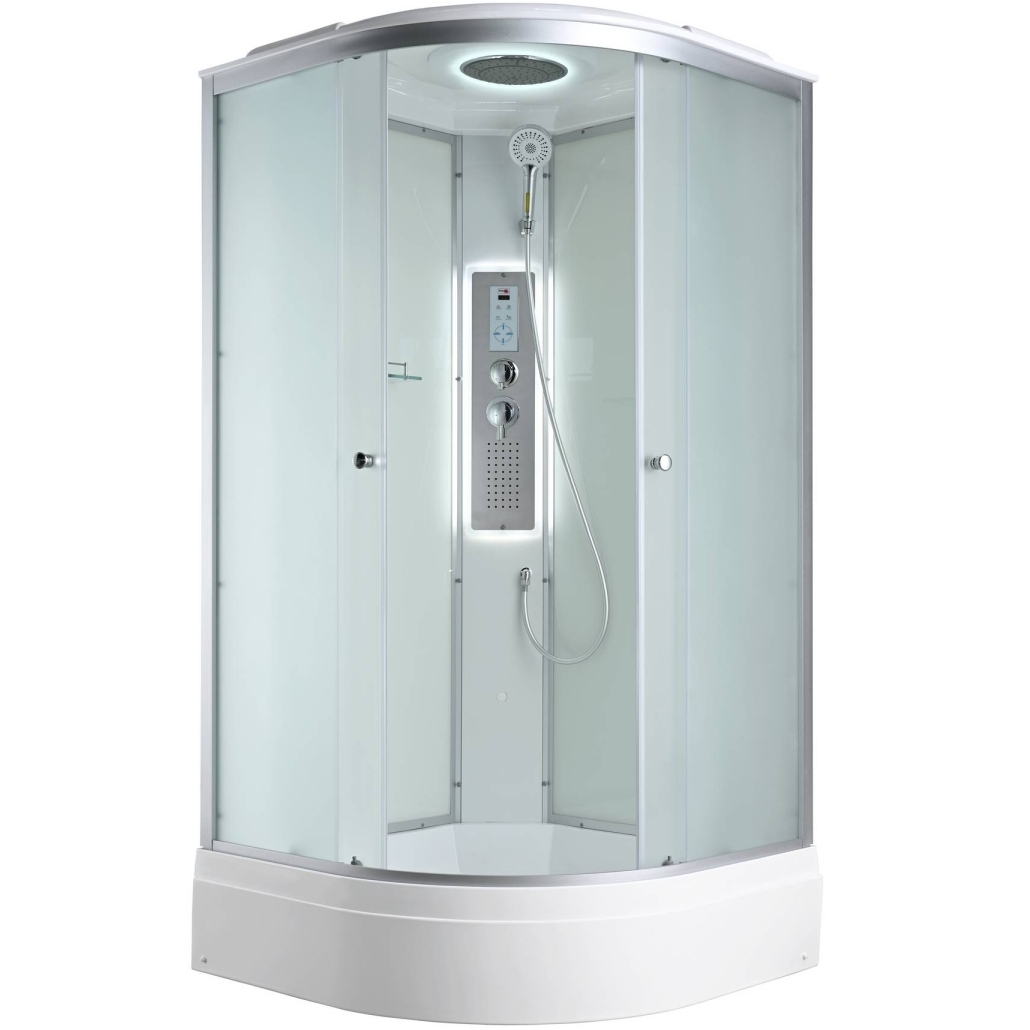 Стильная душевая кабина сочетает в себе высокую функциональность, практичность и надежность. При изготовлении применяется безопасное закаленное стекло толщиной 4 мм (матовое), надежно фиксируемое алюминиевым профилем. Сборка без силикона (увеличивает срок службы), внутренняя сборка(облегчает установку и ревизию; позволяет установить в ограниченном пространстве), смеситель резьбовой (без хомутов). Съемный экран поддона (позволяет осуществлять ревизию сифона). Цвет профиля матовый хром. Двойные металлические ролики дверей (увеличивают срок службы).В комплекте: полочка, тропический (верхний) душ, арома-лейка с витамином С (картридж съемный), сенсорный пульт (блютуз, радио, LED подсветка в крыше и в центральной панели, вентилятор).
