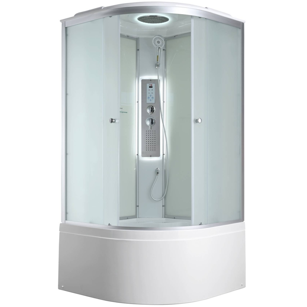 Стильная душевая кабина сочетает в себе высокую функциональность, практичность и надежность. При изготовлении применяется безопасное закаленное стекло толщиной 4 мм (матовое), надежно фиксируемое алюминиевым профилем. Сборка без силикона (увеличивает срок службы), внутренняя сборка(облегчает установку и ревизию; позволяет установить в ограниченном пространстве), смеситель резьбовой (без хомутов). Съемный экран поддона (позволяет осуществлять ревизию сифона). Цвет профиля матовый хром. Двойные металлические ролики дверей (увеличивают срок службы).В комплекте: полочка, тропический (верхний) душ, арома-лейка с витамином С (картридж съемный), сенсорный пульт (блютуз, радио, LED подсветка в крыше и в центральной панели, вентилятор).