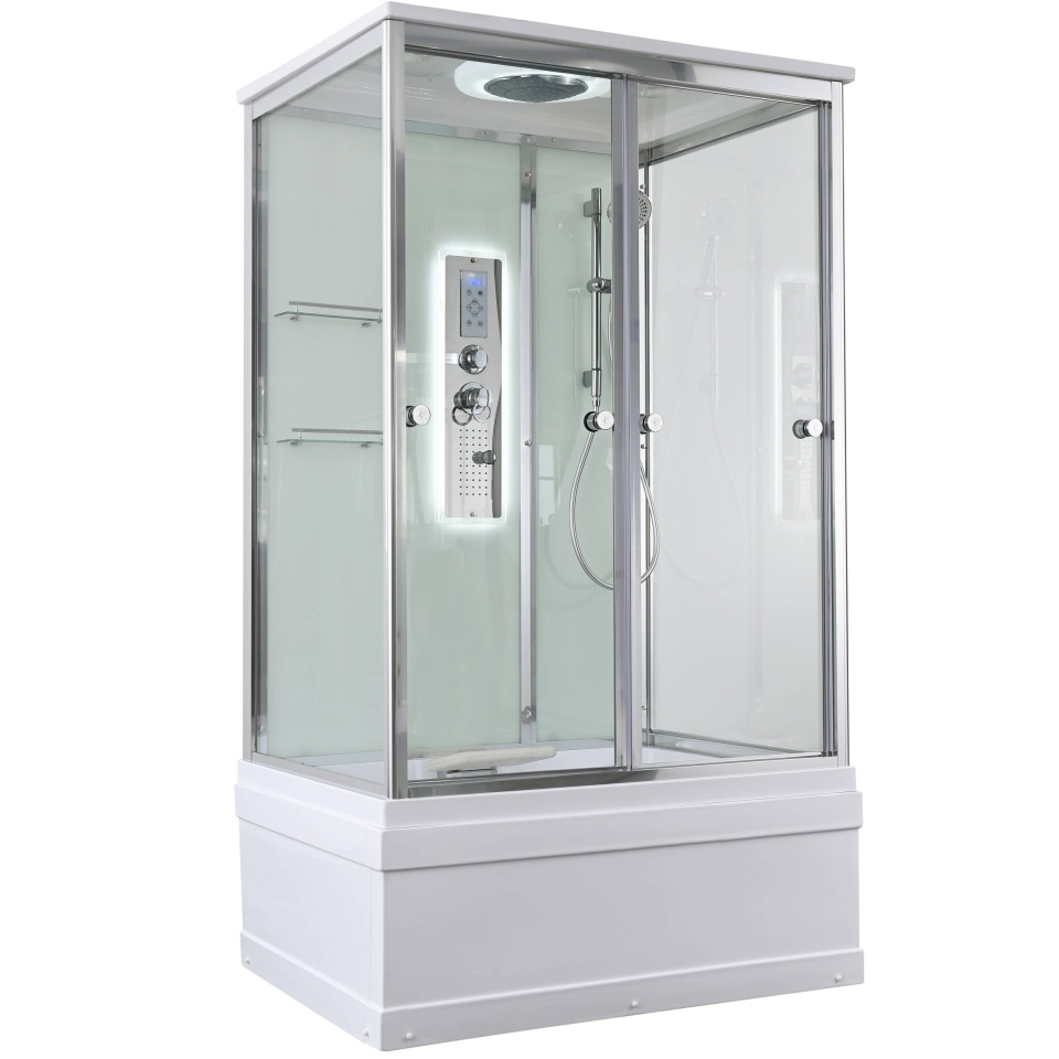 Стильная душевая кабина AvaCan сочетает в себе высокую функциональность, практичность и надежность. При изготовлении применяется безопасное закаленное стекло, надежно фиксируемое алюминиевым профилем. Профиль сделан из алюминия повышенной прочности. Сборка без силикона (увеличивает срок службы, защищает от протечек), внутренняя сборка (облегчает установку и ревизию; позволяет установить в ограниченном пространстве и обойтись без демонтажа других сантехнических приборов), смеситель резьбовой (без хомутов). Съемный экран поддона (позволяет осуществлять подключение и ревизию сифона). Двойные металлические ролики дверей (распределение нагрузки на два ролика, увеличивают срок службы). Душевая штанга (позволяет регулировать по высоте ручную лейку), ручная арома-лейка с витамином С (картридж в комплекте, есть возможность замены или удаления картриджа), полочки (из стекла, с ограничителем), сифон с гидрозатвором, сенсорный пульт управления с функциями: блютуз, LED подсветка, радио, вытяжка, гидромассаж спины, тропический (верхний) душ.