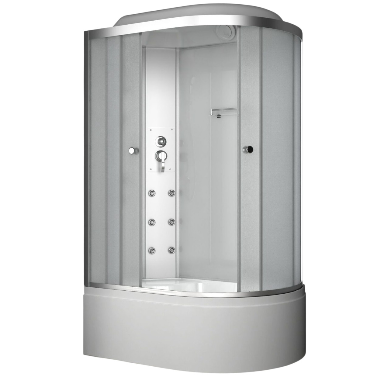 Душевая кабина закрытого типа. Комплектация: тропический и ручной душ, полка стеклянная, вентиляционная решетка, смеситель 3 режима, гидромассаж 6 форсунок.