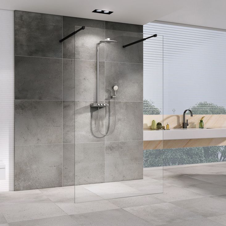 Душевая перегородка для ванной комнаты. Высота перегородки 200 см. Черный матовый профиль.