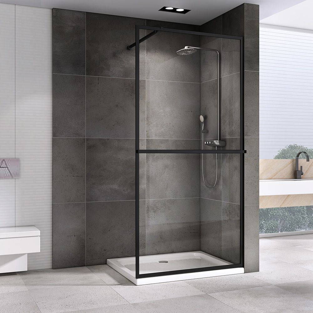 Душевая перегородка для ванной комнаты с держателем для полотенца. Высота перегородки 200 см. Черный матовый профиль.