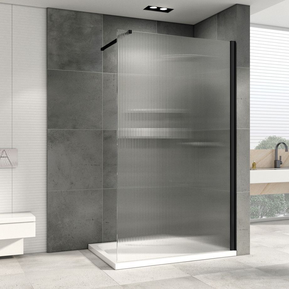 Душевая перегородка для ванной комнаты. Высота перегородки 200 см. Черный матовый профиль.