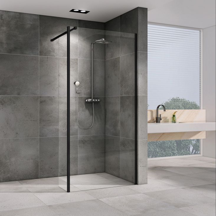 Душевая перегородка для ванной комнаты. Высота перегородки 200 см. Черный матовый профиль.