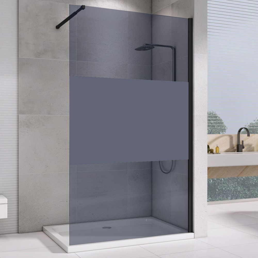 Душевая перегородка для ванной комнаты. Высота перегородки 200 см. Черный матовый профиль.
