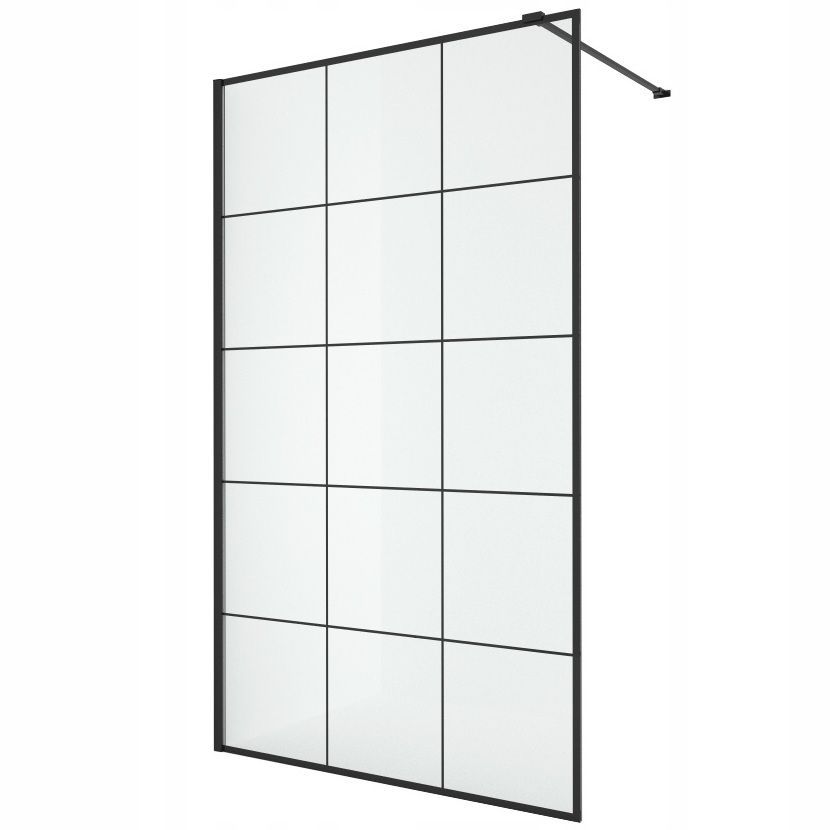 Стекло: закаленное 6 мм прозрачное с черным принтом. Профиль: черный алюминиевый. Универсальная сборка левая или правая. Наличие пристенных профилей для удобства монтажа на неровные стены.