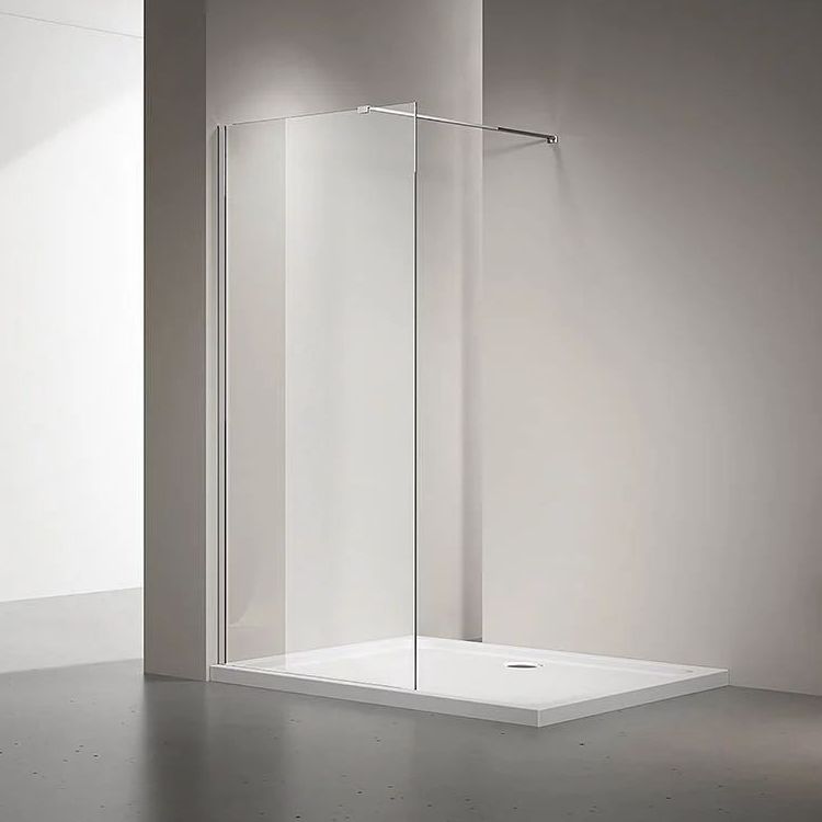 Стекло закалённое безопасное 8 мм. Профиль анодированный алюминий. Усиливающая пристенная штанга из нержавеющей стали - 1195 мм. Штангу можно подрезать под необходимый размер. Конструкция штанги поворотная и у стены и у стекла. Поддон приобретается отдельно.