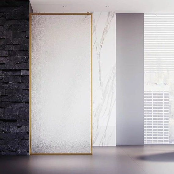 Стекло закалённое безопасное 8 мм. Стекло "Дождь". Профиль анодированный алюминий. Профиль по всему периметру стекла. Стекло обработано Easy Clean. Усиливающая пристенная штанга из нержавеющей стали - 1200 мм. Штангу можно подрезать под необходимый размер. Поддон приобретается отдельно.