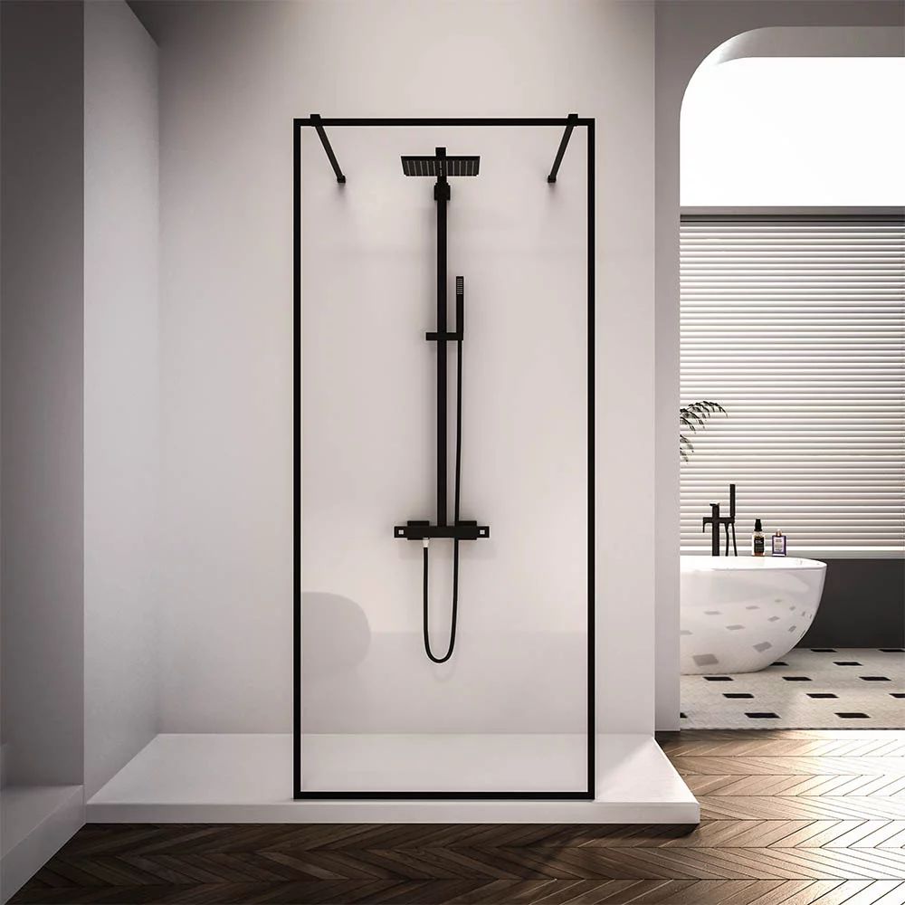 Душевая перегородка. Стекло закалённое безопасное 8 мм. Профиль анодированный алюминий. Профиль по всему периметру стекла. Стекло обработано Easy Clean. Усиливающая пристенная штанга из нержавеющей стали - 1200 мм - 2 шт. Без пристенного профиля. Штангу можно подрезать под необходимый размер. Поддон приобретается отдельно.