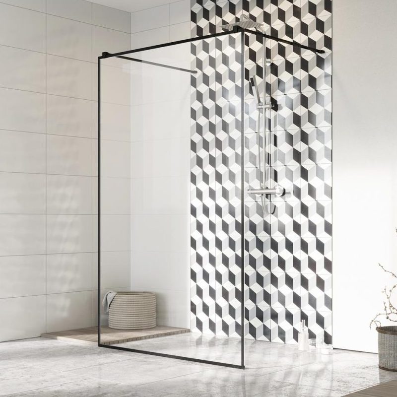Безопасное закалённое стекло толщиной 8 мм, согласно стандарту PN:EN 12150:1. Стекло крепится к стене с помощью пристенных профилей (с регулировкой). Эту душевую перегородку возможно установить так на поддоне, как и непосредственно на пол. Защитное покрытие помогает содержать чистоту на поверхности стекол. Благодаря водоотталкивающим свойствам капли воды не удерживаются на поверхности стекла и быстро стекают, не оставляя следа. Это изделие подлежит модификациям. Изделие доступно в нескольких вариантах стекла. Возможность сделать гравировку на стекле. По умолчанию вся продукция укомплектована горизонтальными стабилизаторами. Если нет возможности прикрепить этот стабилизатор к стене, разрешите предложить Вам телескопический стабилизатор к потолку. Максимальная высота потолка 3 метра. Держатель для полотенец под заказ - крепится к 2 точкам на стекле, либо к стеклу и стене.