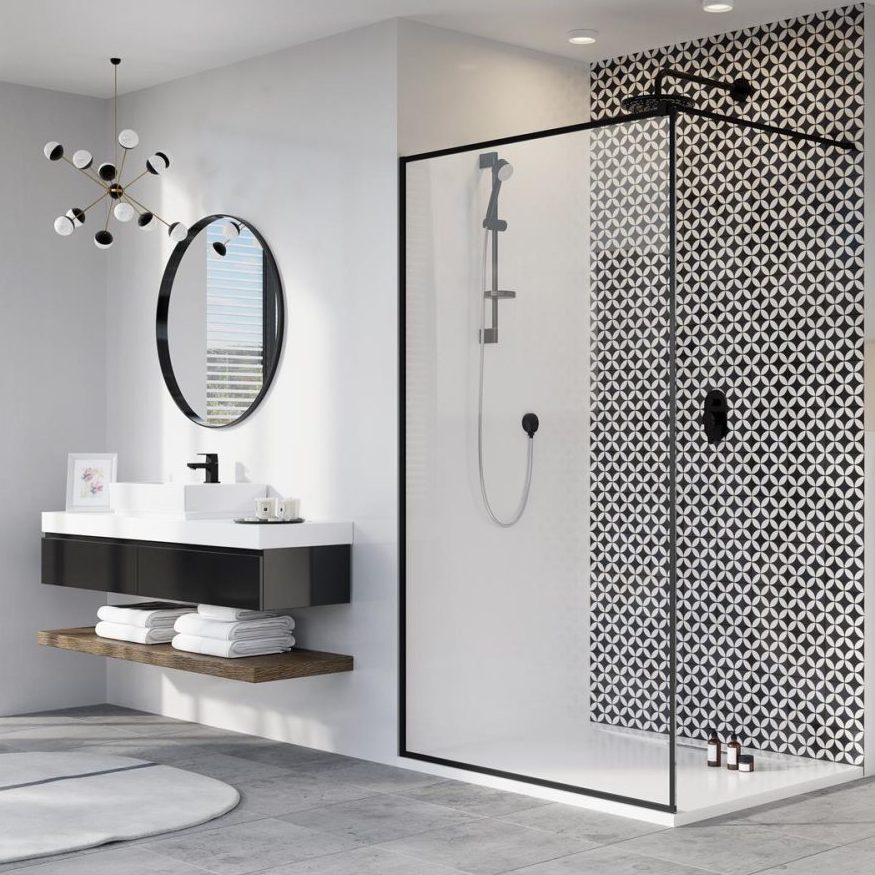 Безопасное закалённое стекло толщиной 8 мм, согласно стандарту PN:EN 12150:1. Стекло крепится к стене с помощью пристенных профилей (с регулировкой). Эту душевую перегородку возможно установить так на поддоне, как и непосредственно на пол. Защитное покрытие помогает содержать чистоту на поверхности стекол. Благодаря водоотталкивающим свойствам капли воды не удерживаются на поверхности стекла и быстро стекают, не оставляя следа. Это изделие подлежит модификациям. Изделие доступно в нескольких вариантах стекла. Возможность сделать гравировку на стекле. По умолчанию вся продукция укомплектована горизонтальными стабилизаторами. Если нет возможности прикрепить этот стабилизатор к стене, разрешите предложить Вам телескопический стабилизатор к потолку. Максимальная высота потолка 3 метра. Держатель для полотенец под заказ - крепится к 2 точкам на стекле, либо к стеклу и стене.