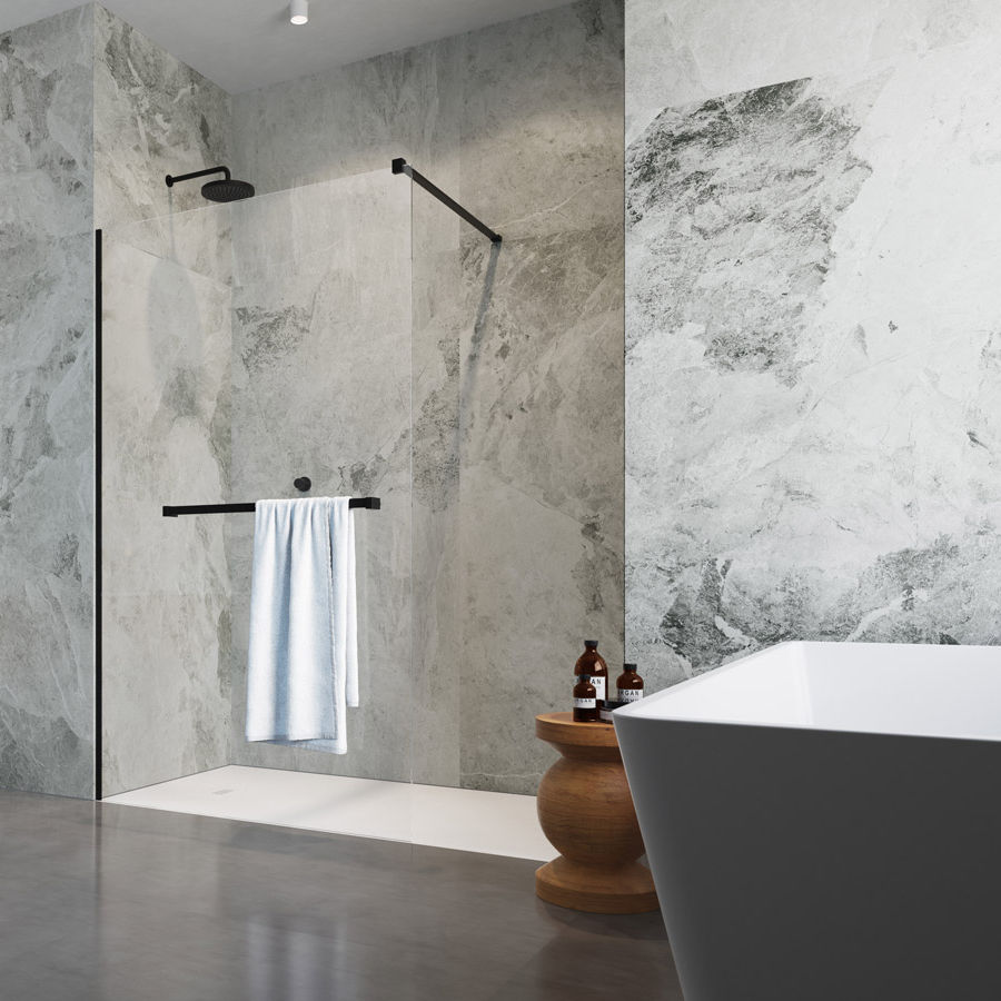 Неподвижная перегородка для душа типа Walk-In с полотенцедержателем в черном матовом исполнении профиля, кронштейна и держателя для полотенец. Безопасное закалённое стекло толщиной 8 мм, согласно стандарту PN:EN 12150:1. Стекло крепится к стене с помощью пристенных профилей (с регулировкой). Эту перегородку возможно установить так на поддоне, как и непосредственно на пол. Защитное покрытие Easy Clean помогает содержать чистоту на поверхности стекол. Благодаря водоотталкивающим свойствам капли воды не удерживаются на поверхности стекла и быстро стекают, не оставляя следа. Это изделие подлежит модификациям. Изделие доступно в нескольких вариантах стекла. Возможность сделать гравировку на стекле. По умолчанию вся продукция укомплектована горизонтальными стабилизаторами.