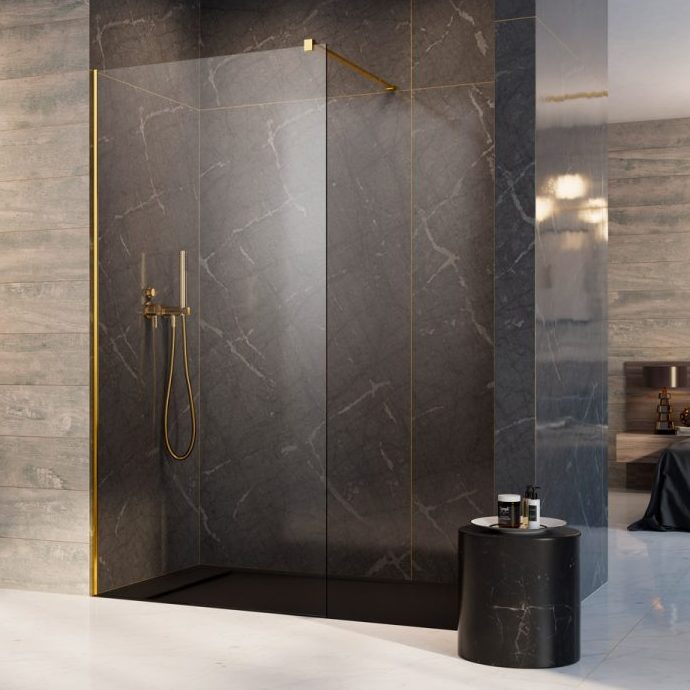 Коллекция Modo New – это воплощение простоты и функциональности, которую предлагают кабины Walk-in. Профили в золотом цвете и большой лист безопасного закаленного стекла у перегородки Modo New Gold II, с одной стороны увлекают минимализмом, с другой привлекают изысканным дизайном. Благодаря им перегородка становится центром современной ванной комнаты. Перегородки типа свободный вход больше всего очаровывают своей красотой, когда они установлены прямо на пол.