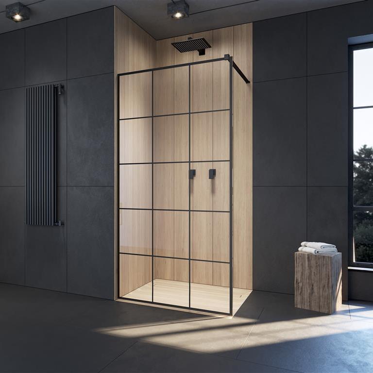 Безопасное закалённое стекло толщиной 10 мм, согласно стандарту PN:EN 12150:1. Система крепления к стене с помощью стабилизаторов - обеспечивает прочную конструкцию перегородки. Элегантная черная матовая фурнитура. Эту душевую перегородку возможно установить так на поддоне, как и непосредственно на пол. Продукция подходит для инвалидов. Защитное покрытие помогает содержать чистоту на поверхности стекол. Благодаря водоотталкивающим свойствам капли воды не удерживаются на поверхности стекла и быстро стекают, не оставляя следа. Это изделие подлежит модификациям. Возможность сделать гравировку на стекле.