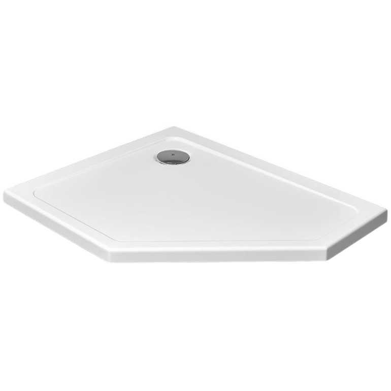 Плоский пятиугольный поддон для монтажа непосредственно на пол (необходимо приклеить на раствор или пену с низким коэффициентом расширения) 100x80, 100x90 см, высота поддона - 5 см, отверстие под сифон Ø 90 мм