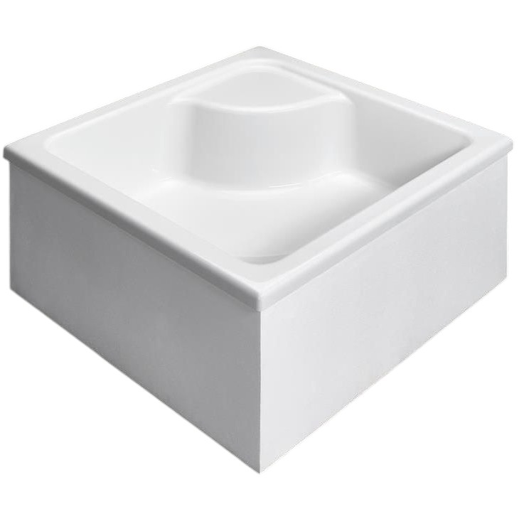 Высокий акриловый поддон на базе из пенопласта вместо ножек, который гарантирует термо и звукоизоляцию. Aкриловая поверхность обладает анти-бактериальными свойствами. Сливное отверстие Ø 50 мм.