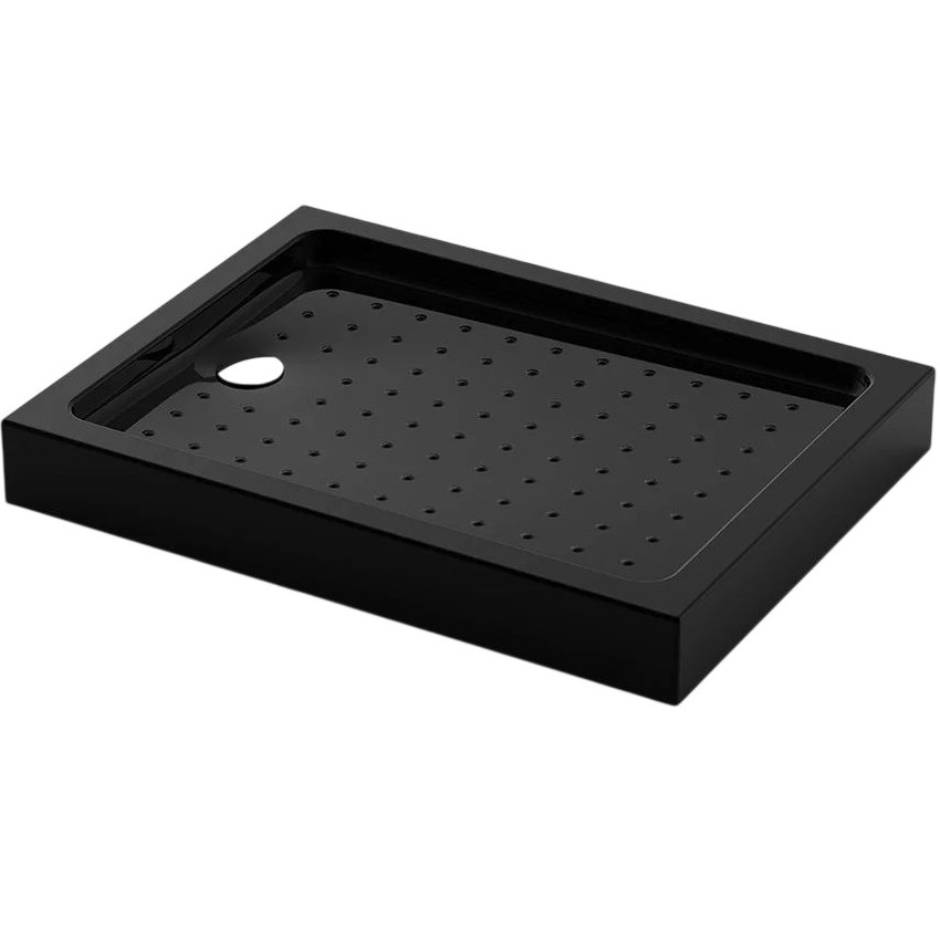 Душевой поддон прямоугольный. Установка на регулируемые ножки. Материал: акрил. Цвет - черный. Усиленный литой экран. Антискользящее покрытие. Сифон в комплекте 90. Максимальная нагрузка на поддон 200 кг.