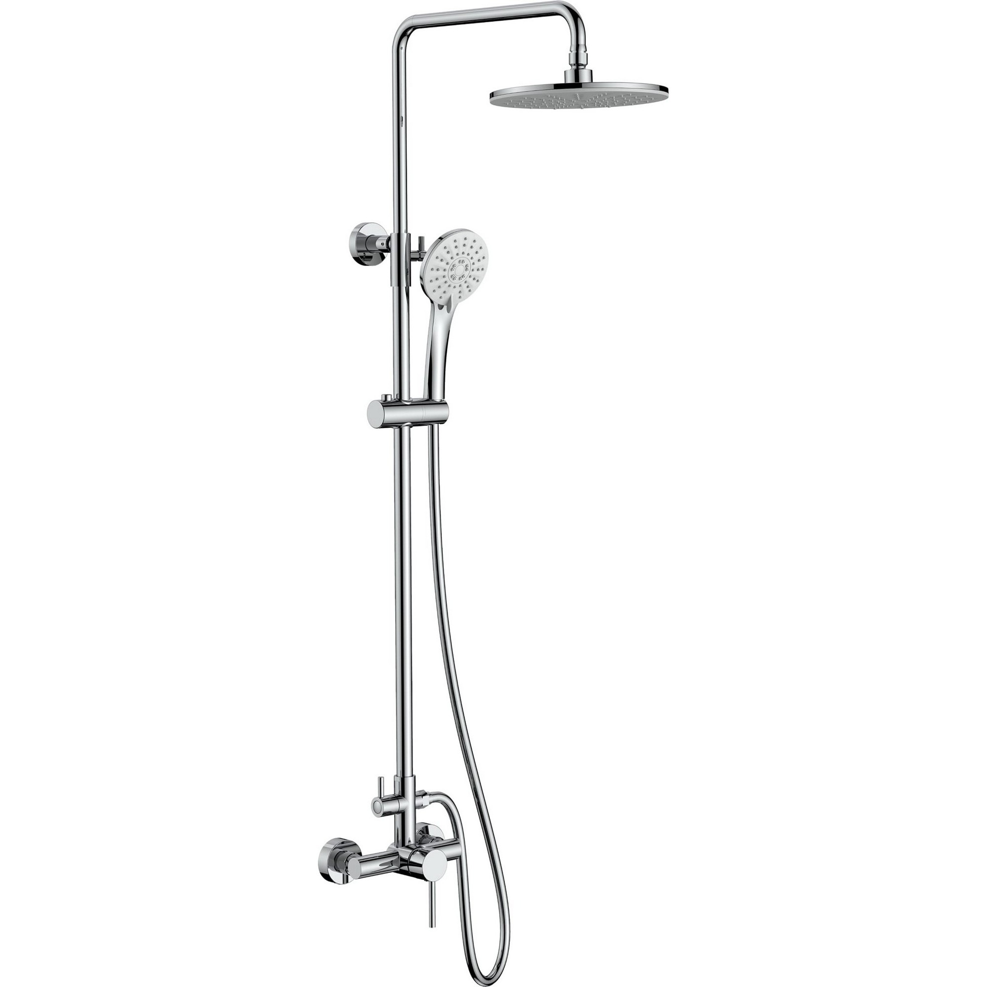 Дополнительные свойства: система Telescopico - дает возможность регулирования высоты душевой системы, система Gioco верхнего душа, гибкий полимерный шланг с защитой от залома и гладкой поверхностью, керамический картридж. Комплектация: смеситель, телескопическая штанга с держателем для ручного душа, ручной душ, гибкий полимерный шланг, верхний душ, эксцентрики, чаши декоративные.