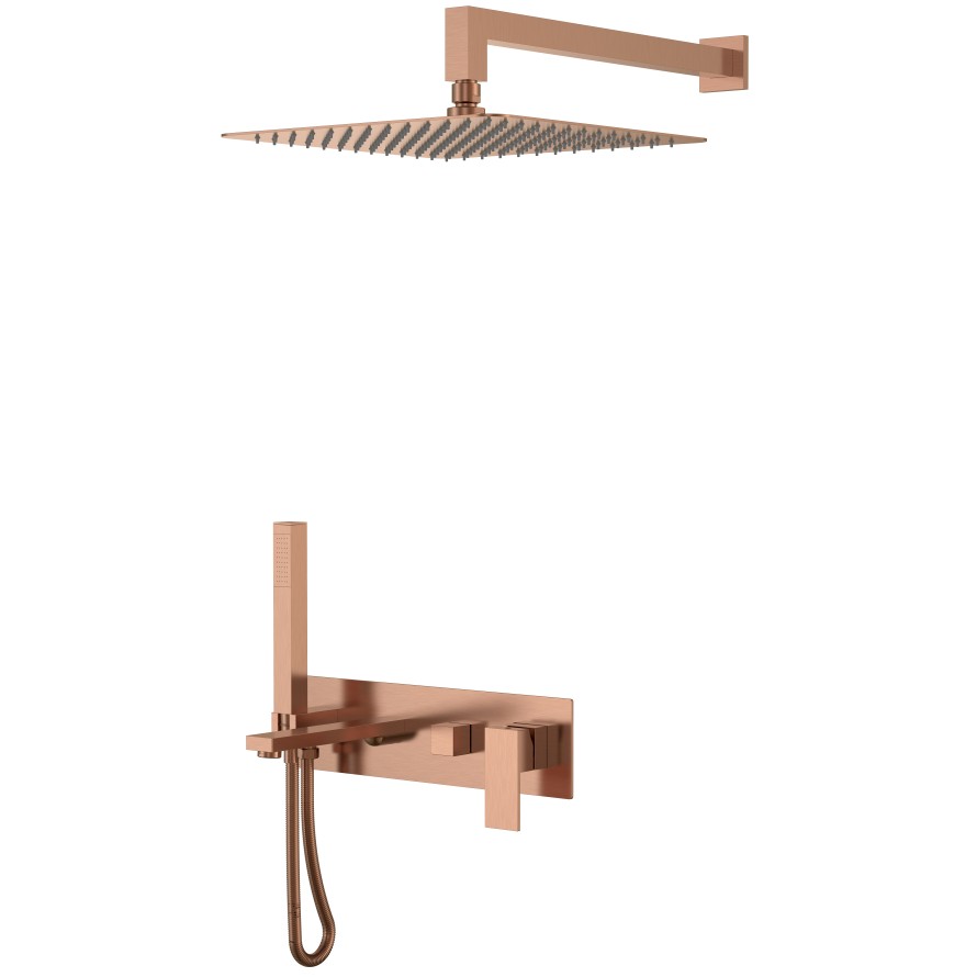 Душевая система встраиваемого монтажа с тропическим душем, изливом и ручной лейкой.