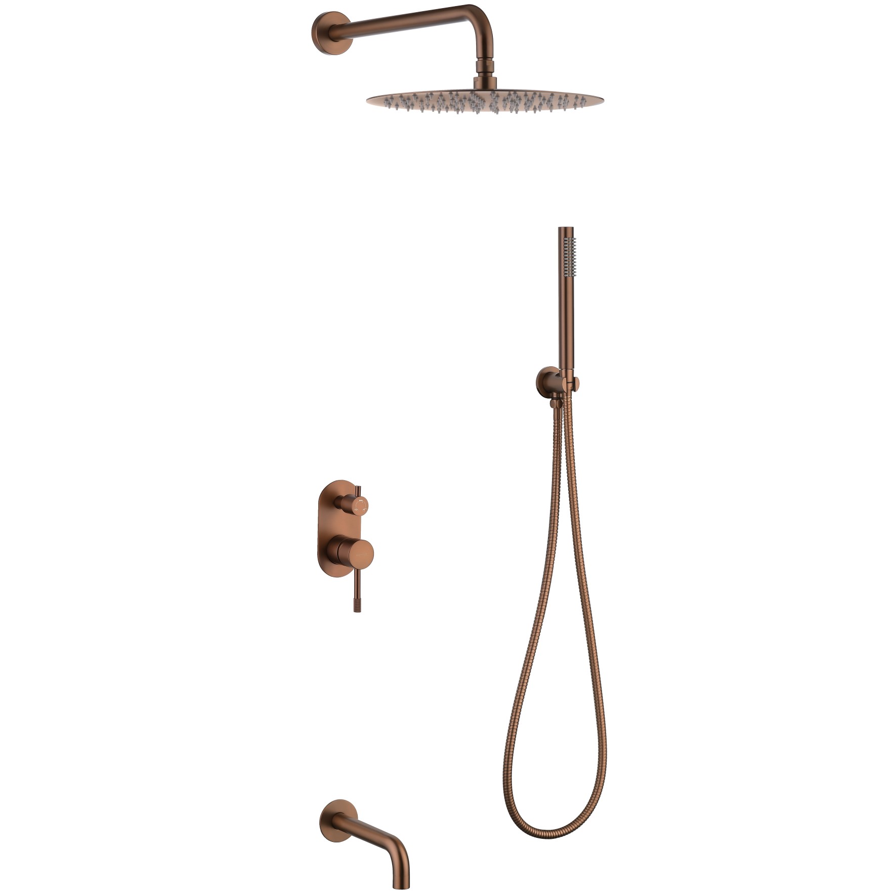 Душевая система встраиваемого монтажа с тропическим душем, изливом и ручной лейкой.