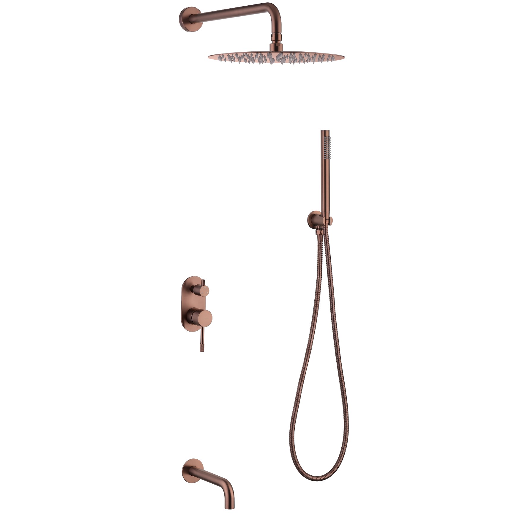 Душевая система встраиваемого монтажа с тропическим душем, изливом и ручной лейкой.