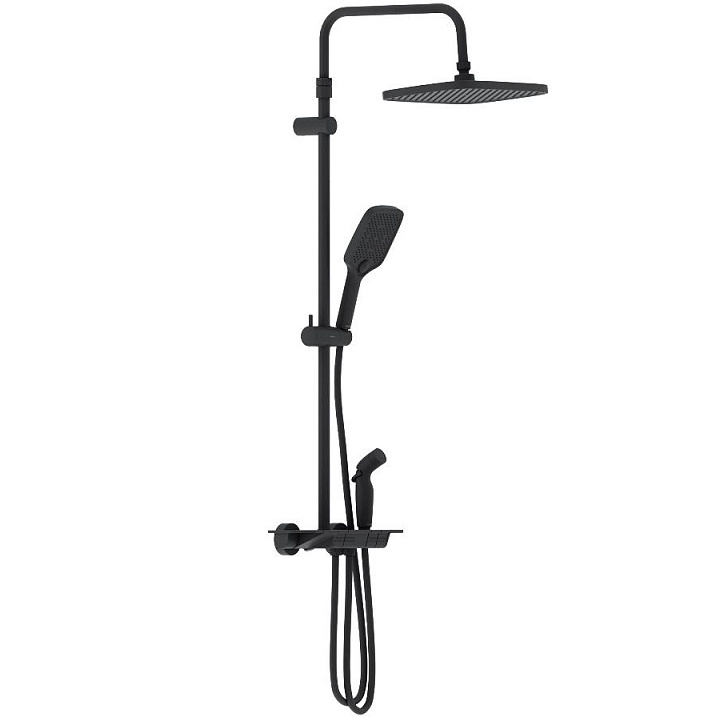 Душевая система Gala обладает мягкими геометричными формами, которые идеально впишутся в современную ванную комнату. Минималистичная и стильная, она отличается самым широким функционалом в линейке и удовлетворит даже искушенного пользователя. Цвет - черный матовый. Размер (Ш/Г/В): 300x477x1050-1450 мм. Материал душевой системы - латунь; пластик. В комплектацию душевой системы входят: тропический душ, ручной душ, термостатический смеситель с гигиеническим душем.