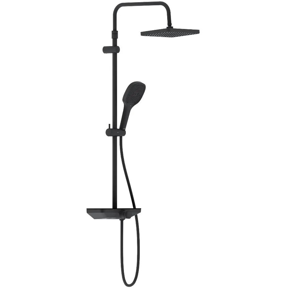 Чистые геометричные линии душевой системы Merkur в сочетании с черным матовым покрытием идеально впишутся в интерьер современной ванной комнаты в скандинавском стиле. Цвет - черный матовый. Материал душевой системы - латунь; пластик. В комплектацию душевой системы входят: тропический душ, ручной душ, термостатический смеситель, эксцентрики, держатели штанги и душа. Длина душевой штанги - 1030-1460 мм. Длина душевого шланга - 1500 мм. Размер ручного душа - 120/25 мм. Диаметр верхнего душа - 230 мм.