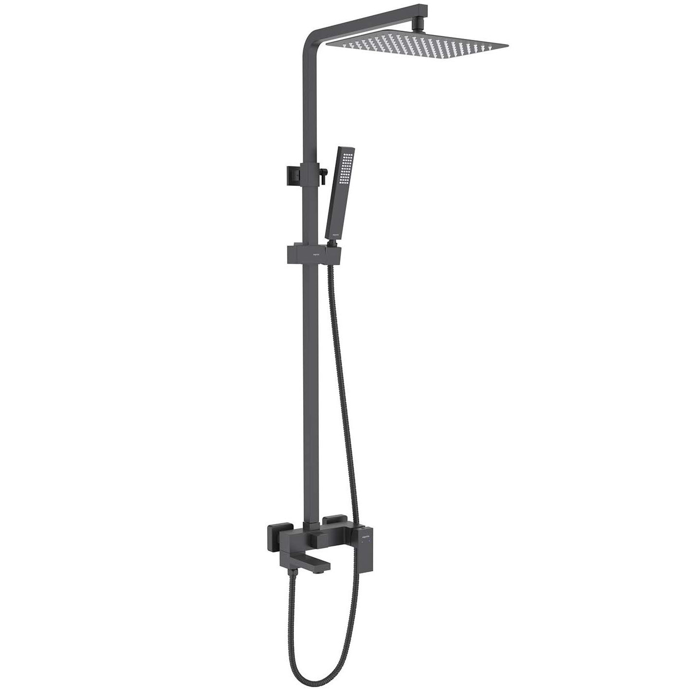 Душевая система оснащена поворотным изливом, который позволяет переключать поток воды между изливом и душевой лейкой с помощью поворота самого излива (носика) к стене/от стены. При повернутом к стене изливе переключение потока воды между верхнем душем и душевой лейкой осуществляется с помощью поворотного переключателя (дивертора), расположенного по центру на корпусе смесителя. Такая система подходит для совмещённых ванн и душевых кабин, обеспечивая гибкость в использовании воды, и позволяет осуществлять быстрое переключение между режимами без дополнительных действий. Комплект поставки: тропический душ, душевая лейка, рейлинг, душевой шланг из нержавеющей стали, смеситель, излив, S-образные эксцентрики, декоративные отражатели, монтажный комплект.