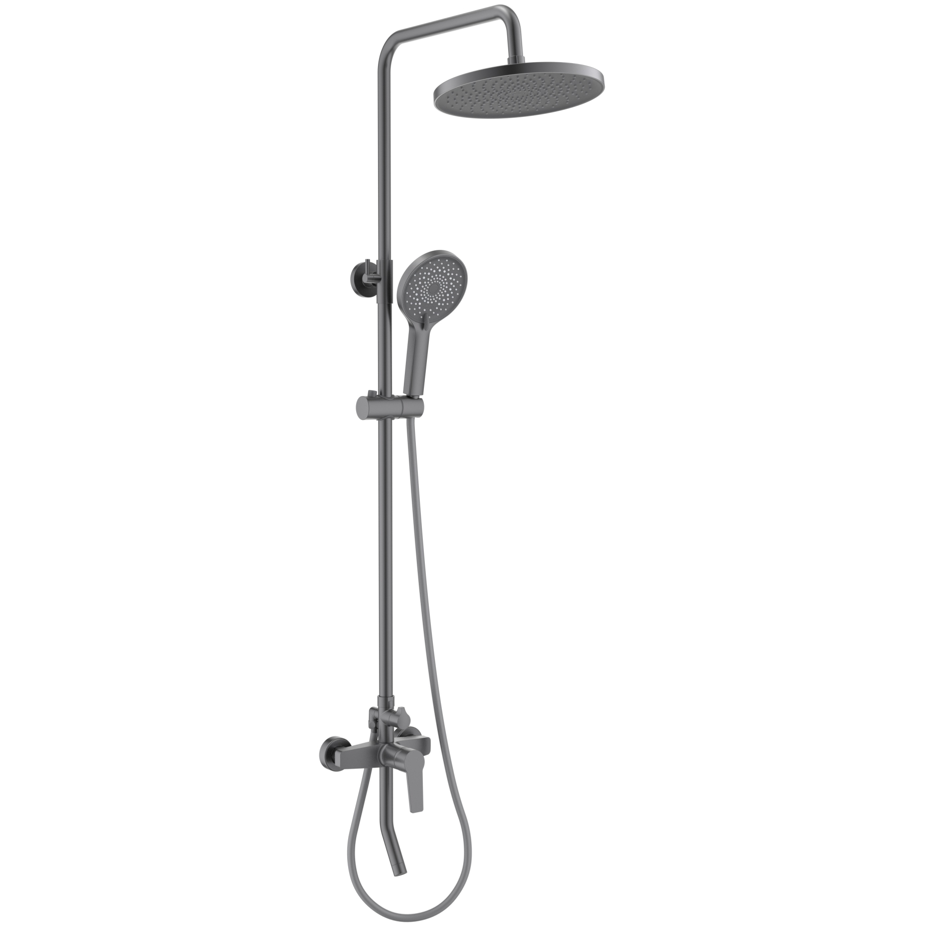Продуманная функциональность системы. Наличие излива. Регулируемая душевая штанга из нержавеющей стали, выдвигающаяся до 1484 мм в высоту. Однорычажная система регулировки силы струи и температуры воды. Увеличенный диаметр тропического душа. 3-х функциональная лейка из пластика. Легкая очистка силиконовых форсунок тропического душа от известкового налета. Долговечный керамический картридж. Лаконичный дизайн. Комплект поставки: тропический душ, душевая лейка, рейлинг, душевой шланг из ПВХ, смеситель, излив, S-образные эксцентрики, декоративные отражатели, монтажный комплект.