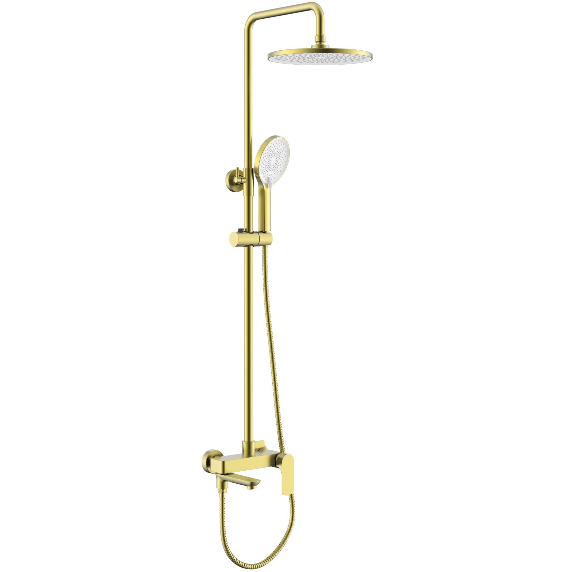 Материал – латунь. Керамический картридж 35 мм. Переключатель с керамическими пластинами (угол поворота – 90°). Излив с функцией переключения. Аэратор. Душевой шланг 1.5 м. Душевая лейка 3 режима. Верхний душ Ø255 мм. Эксцентрики с отражателями, держатель лейки, крепеж штанги.