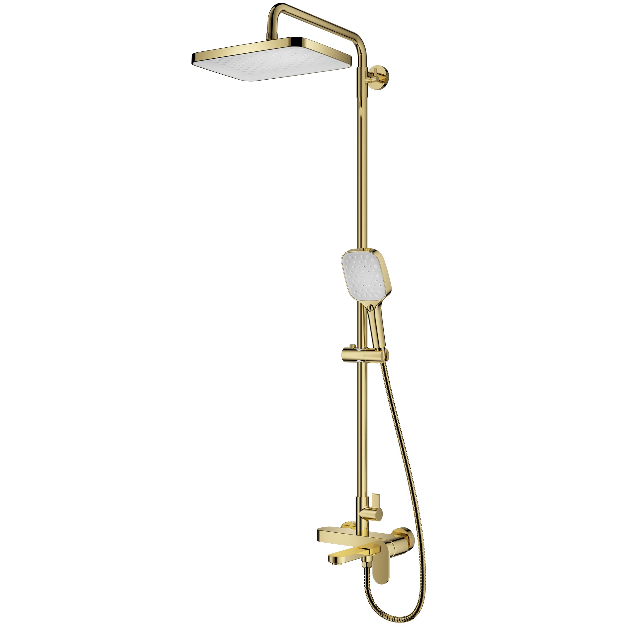 Материал – латунь. Керамический картридж 35 мм. Переключатель с керамическими пластинами (угол поворота – 90°). Излив с функцией переключения. Аэратор. Душевой шланг 1.5 м. Душевая лейка 3 режима. Верхний душ 312x212 мм. Эксцентрики с отражателями, держатель лейки, крепеж штанги.