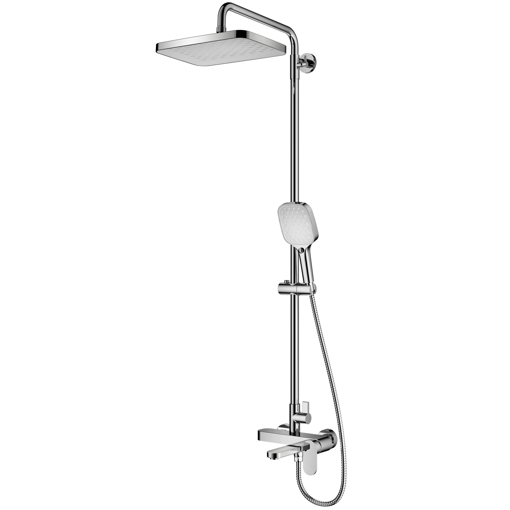 Материал – латунь. Керамический картридж 35 мм. Переключатель с керамическими пластинами (угол поворота – 90°). Излив с функцией переключения. Аэратор. Душевой шланг 1.5 м. Душевая лейка 3 режима. Верхний душ 312x212 мм. Эксцентрики с отражателями, держатель лейки, крепеж штанги.
