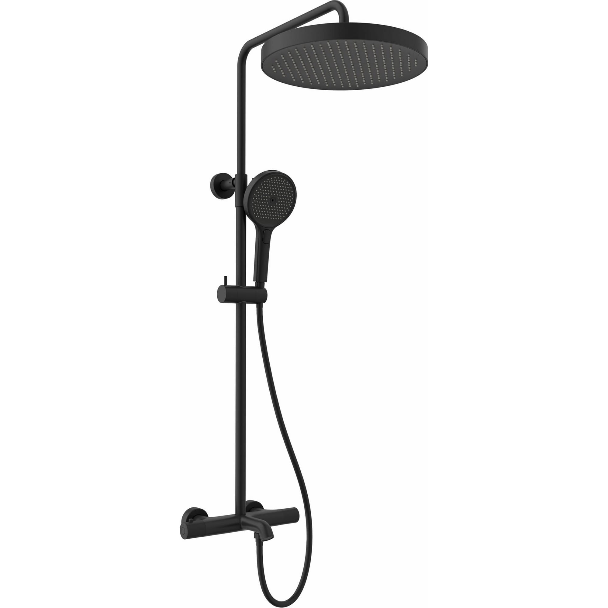 Дополнительные свойства: система ToccoFreddo - исключает возможность ожога о внешнюю поверхность смесителя, система Telescopico - дает возможность регулирования высоты душевой системы, система Gioco верхнего душа, пластиковый верхний душ 32 см, гибкий полимерный шланг с защитой от заломов, двухрежимный пластиковый ручной душ с переключателями с внутренней и внешней стороны, аэратор - смешивающий воду с воздухом и рассеивает ее, для более объемной и мягкой воды; К данной модели возможно приобрести удлиненную штангу. Комплектация: термостатический смеситель, телескопическая штанга с держателем для ручного душа, ручной душ, гибкий полимерный шланг, верхний душ, аэратор, эксцентрики, чаши декоративные, установочный комплект.