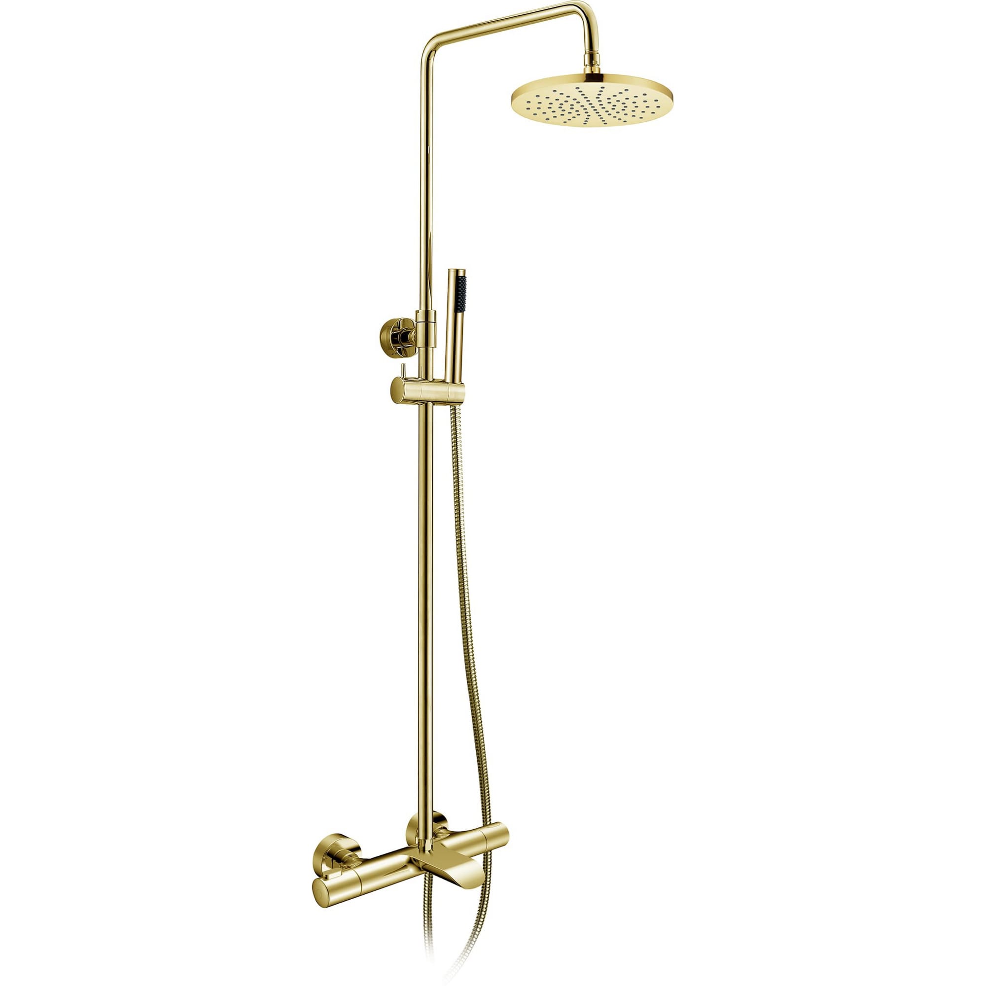 Дополнительные свойства: PVD - покрытие, система ToccoFreddo - исключает возможность ожога о внешнюю поверхность смесителя, система Telescopico - дает возможность регулирования высоты душевой системы, система Gioco верхнего душа, латунный верхний душ, ручной душ, гибкий полимерный шланг с защитой от заломов и гладкой поверхностью, аэратор - смешивающий воду с воздухом и рассеивает ее, для более объемной и мягкой воды. Комплектация: термостатический смеситель, телескопическая штанга с держателем для ручного душа, ручной душ, гибкий полимерный шланг, латунный верхний душ, аэратор, эксцентрики, чаши декоративные.