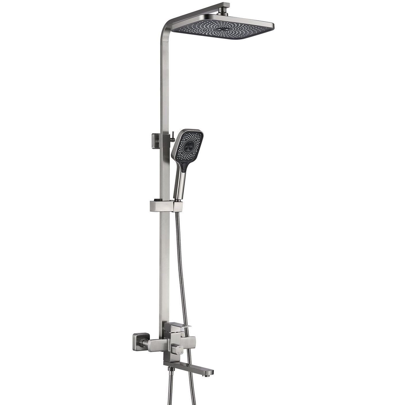 Душевая система с тропическим душем, изливом и ручным душем.