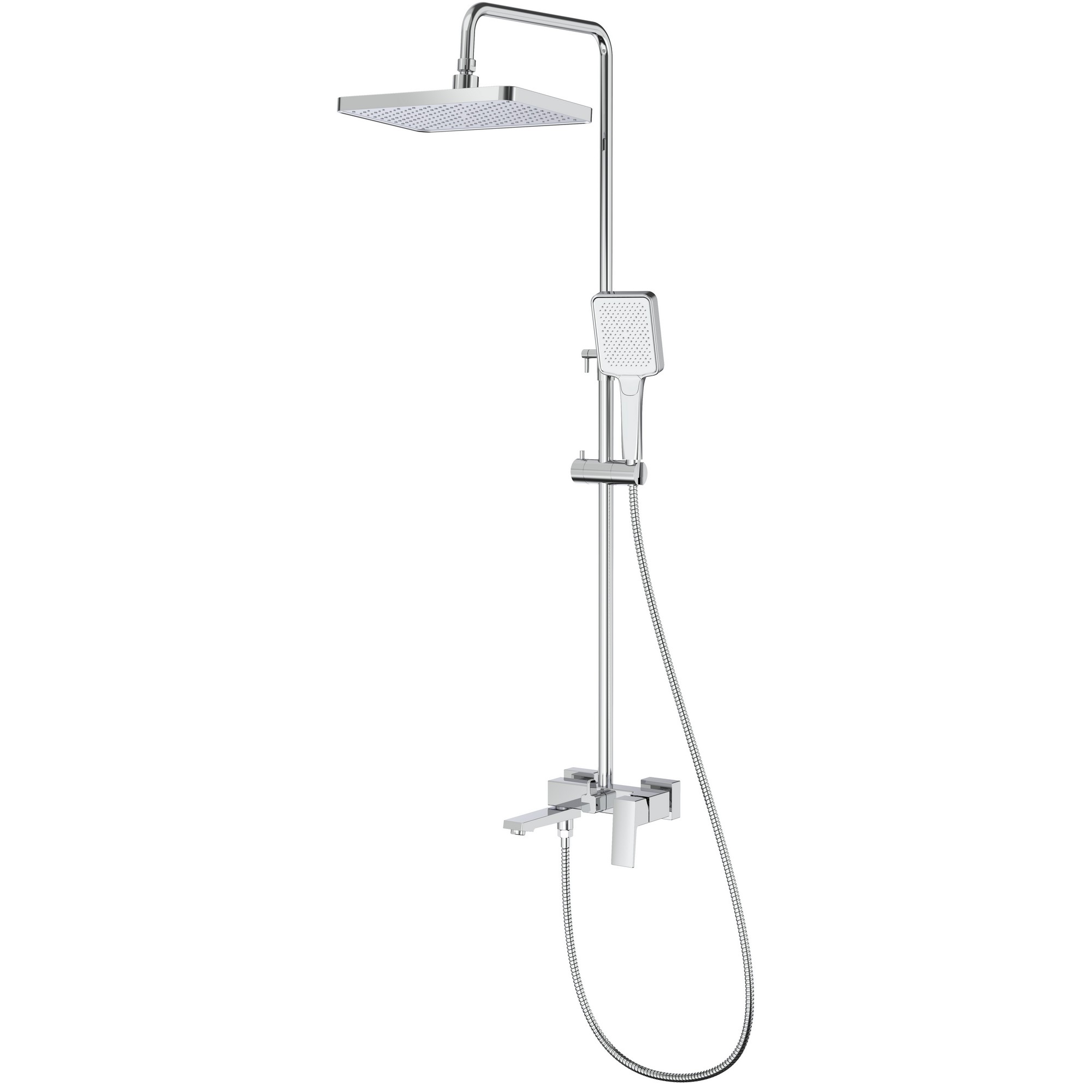 Материал – латунь. Цвет – хром. Керамический картридж. Переключатель с керамическими пластинами. Душевой шланг 1.5 м. Душевая лейка – 3 режима. Верхний душ – 320x210 мм. Излив с функцией переключения. Эксцентрики с отражателями. Держатель лейки. Крепеж штанги.