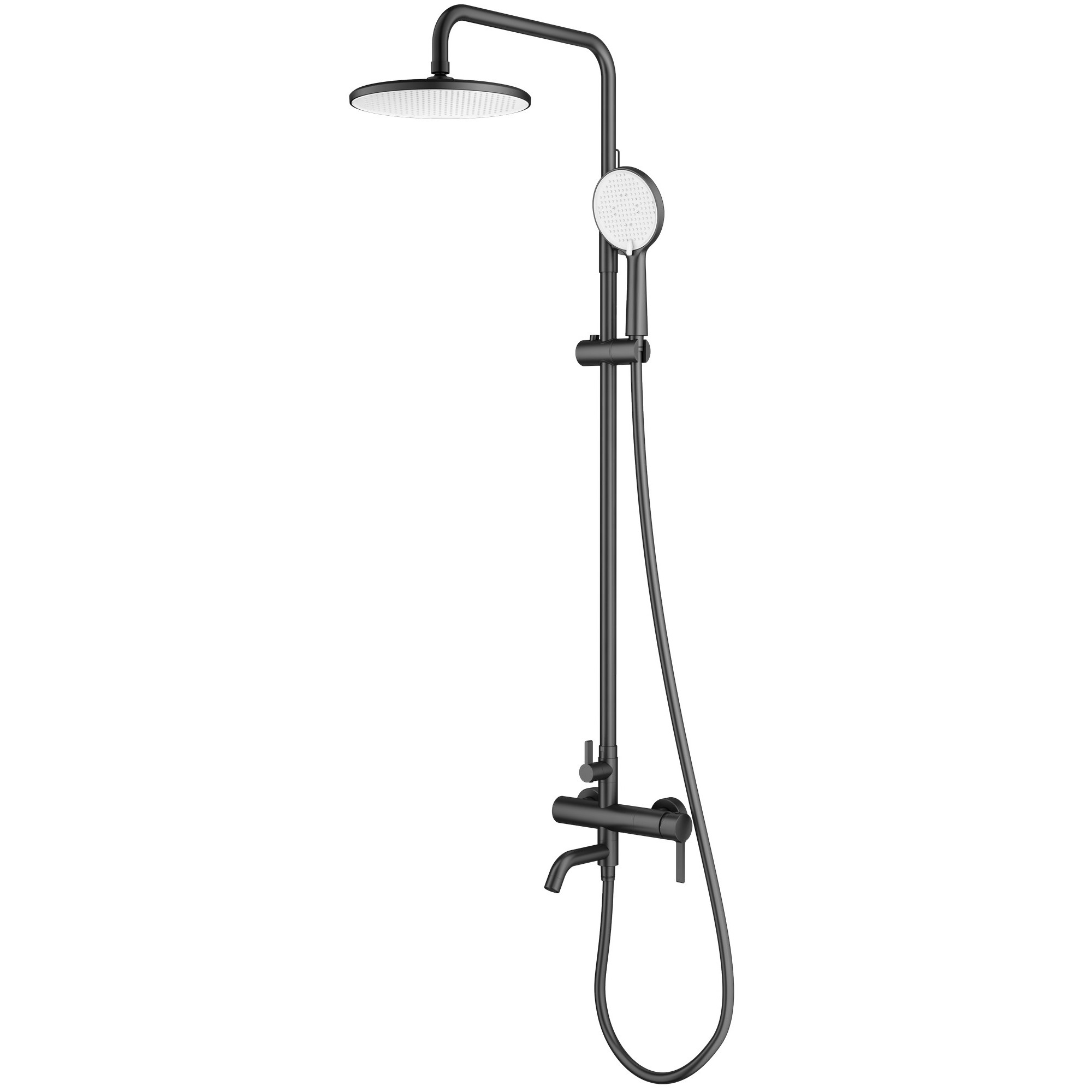 Материал – нержавеющая сталь. Цвет – графит. Керамический картридж. Переключатель с керамическими пластинами. Переключатель в изливе. Душевой шланг 1.5 м. Душевая лейка – 3 режима. Верхний душ – Ø250 мм. Эксцентрики с отражателями. Держатель лейки. Крепеж штанги.