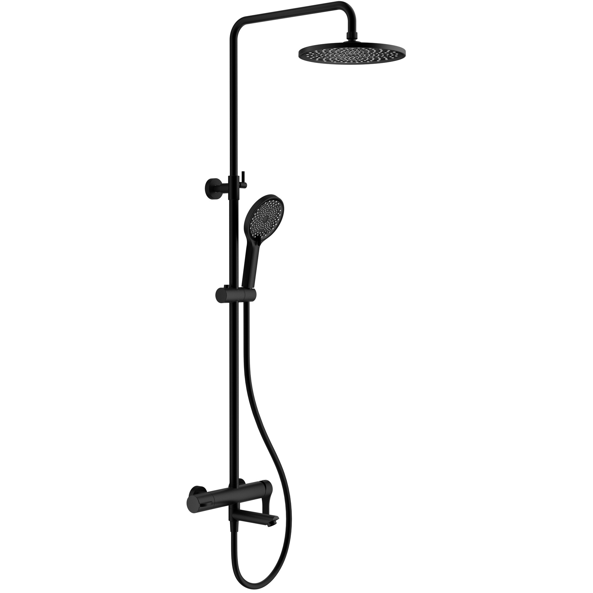 Материал – нержавеющая сталь. Цвет – черный. Керамический картридж. Переключатель с керамическими пластинами. Душевой шланг 1.5 м. Душевая лейка – 3 режима. Верхний душ – Ø250 мм. Эксцентрики с отражателями. Излив с переключателем. Держатель лейки. Крепеж штанги.
