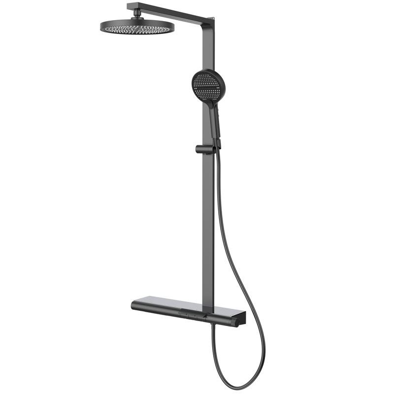 Душевая система настенного монтажа. Ширина 507 мм, Высота 1125 мм. Материал: латунь, нержавеющая сталь. Керамический дисковый картридж. Круглый верхний душ 260 мм. Верхняя панель из стекла. Каскадный излив.