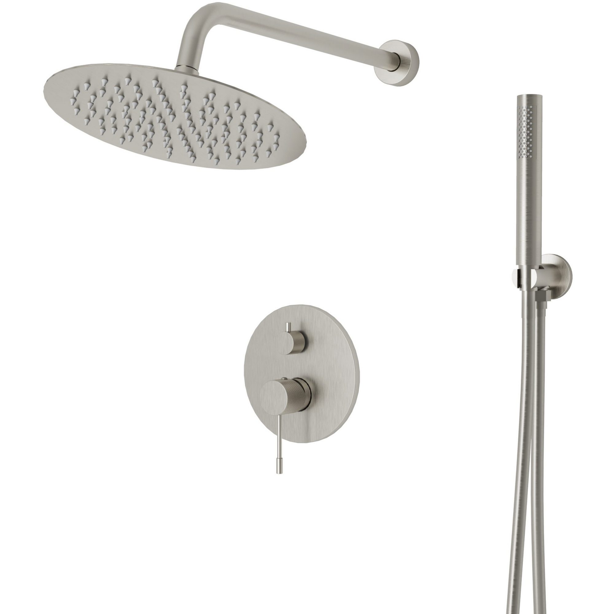 Душевая система настенного монтажа с однозахватным смесителем.