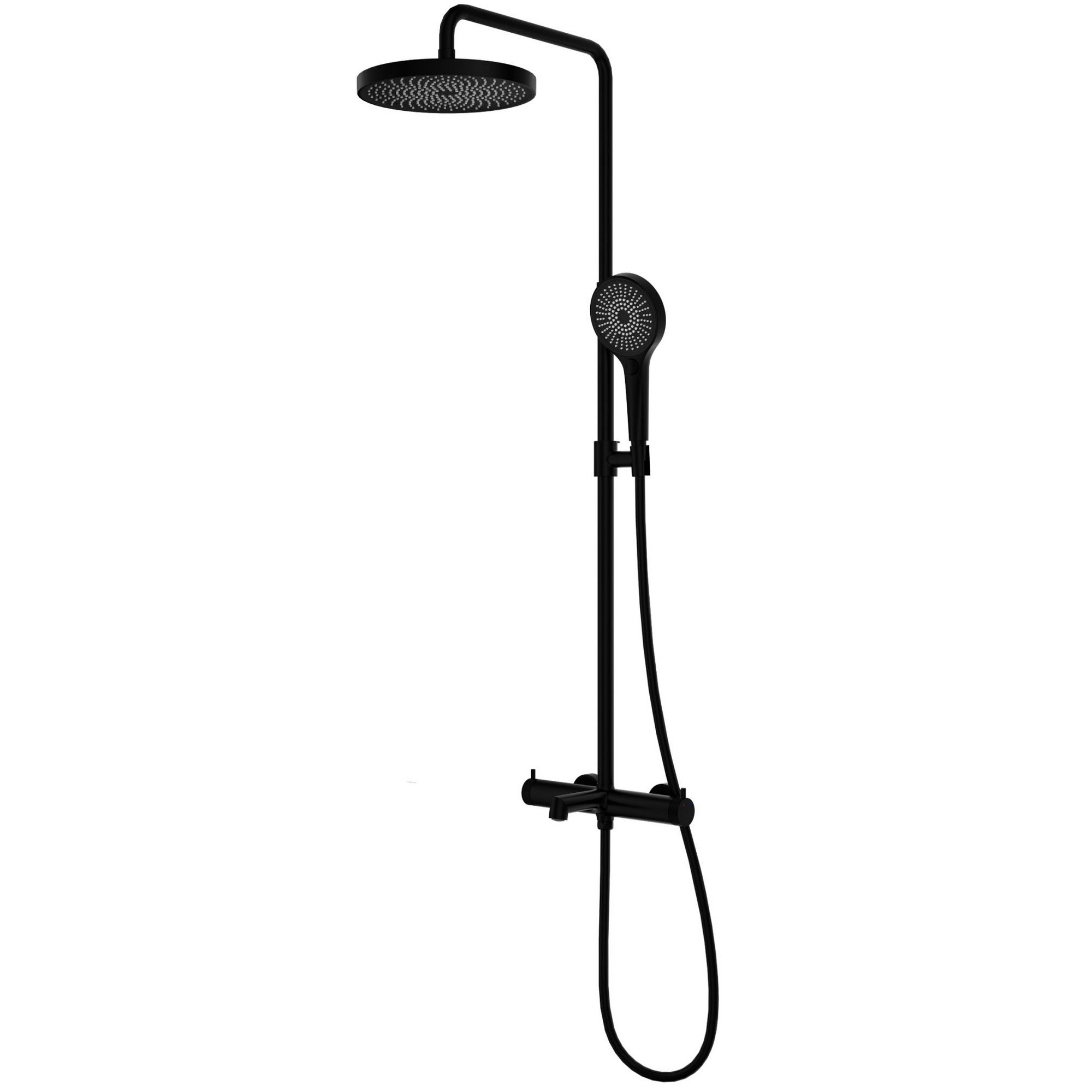 Душевая система настенного монтажа с однорычажным смесителем. Ширина 306 мм. Высота 1186 мм. Материал: латунь. Керамический картридж. Круглый верхний душ 250 мм. Ручной душ 2 функции. Стационарный излив.