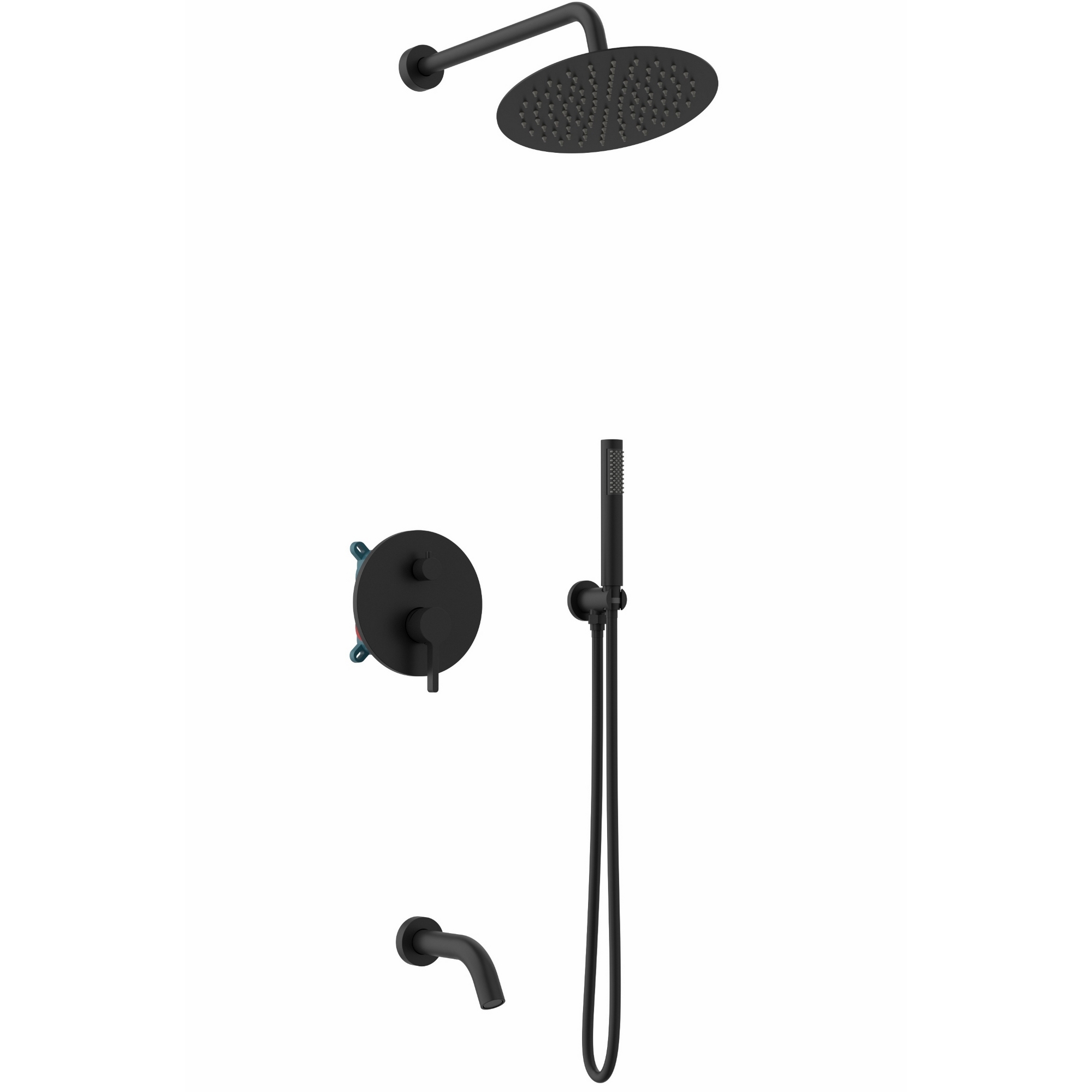 Душевая система встраиваемого монтажа. Материал: латунь, нержавеющая сталь. Керамический картридж. Круглый верхний душ 250 мм. Комплектация: верхний душ, держатель ручного душа, ручной душ, встраиваемый смеситель, стационарный излив.