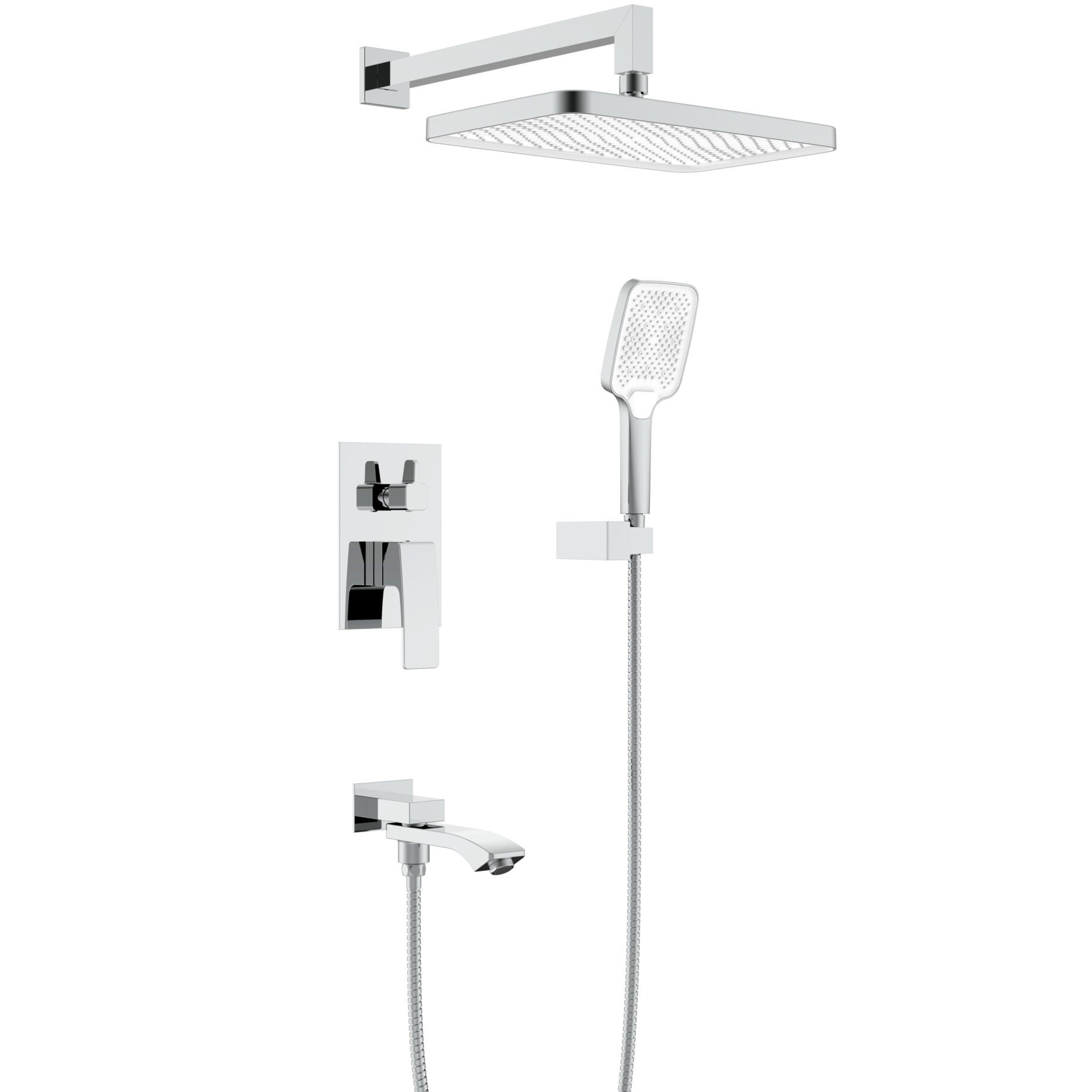 Материал – латунь. Керамический картридж 35 мм. Переключатель с керамическими пластинами (угол поворота – 90°). Поворотный излив с функцией переключения. Аэратор. Душевой шланг 150 см. Душевая лейка 3 режима. Верхний душ 340x220 мм. Держатель лейки.